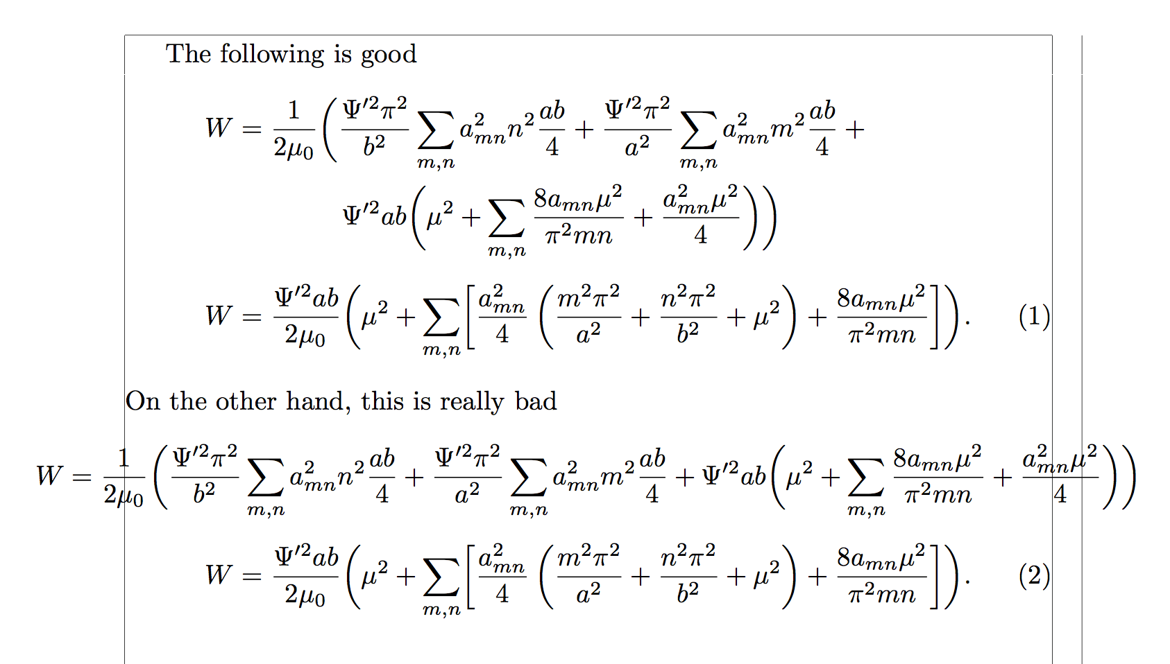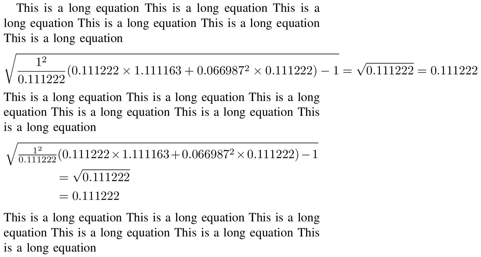 long math equation displayed nice manner tex latex