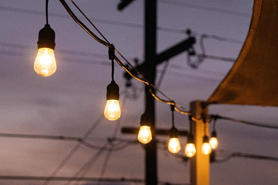 edison style led bulb string lights outdoors nerd techy