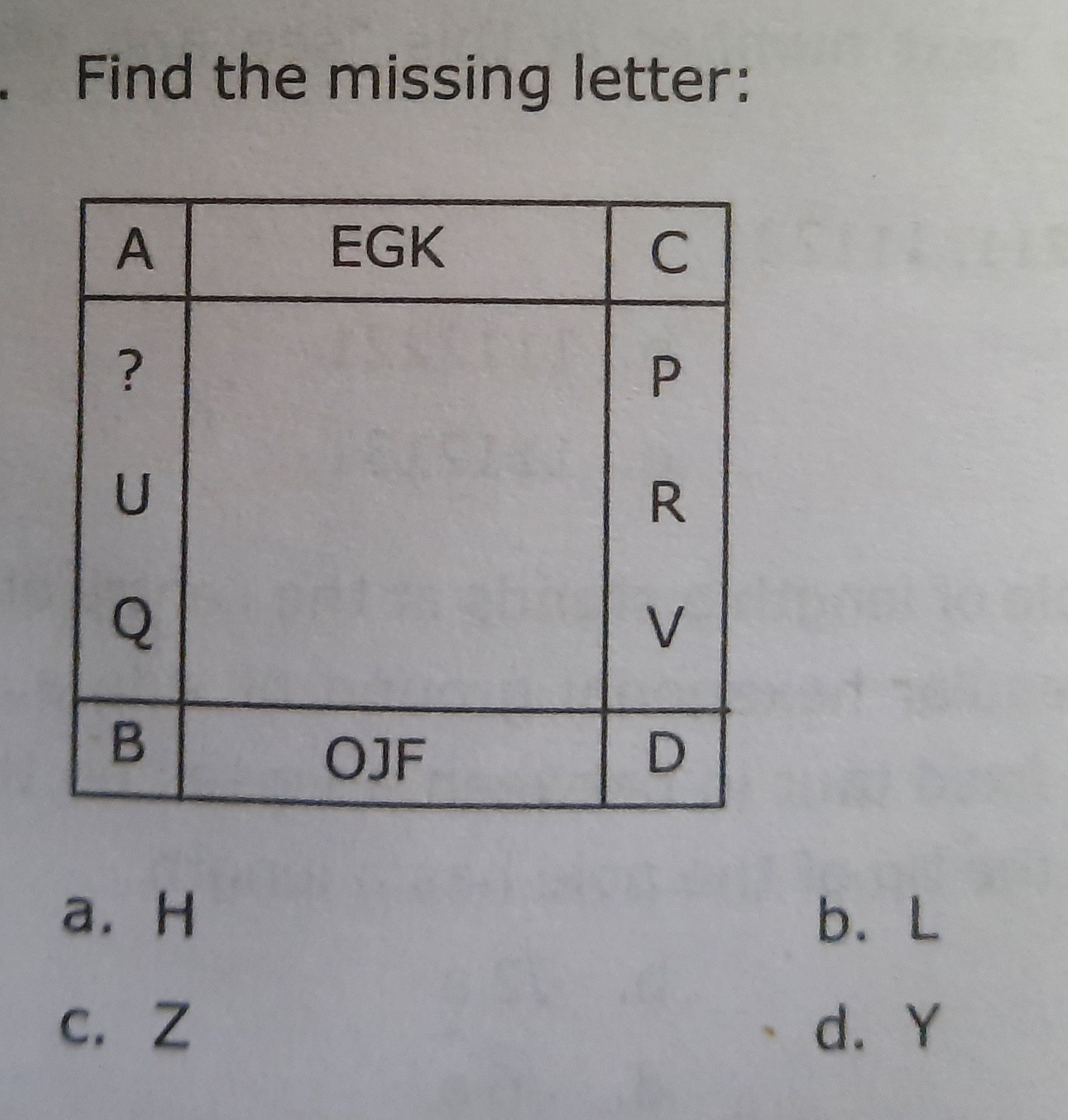 logical deduction find missing letter alphabet puzzle