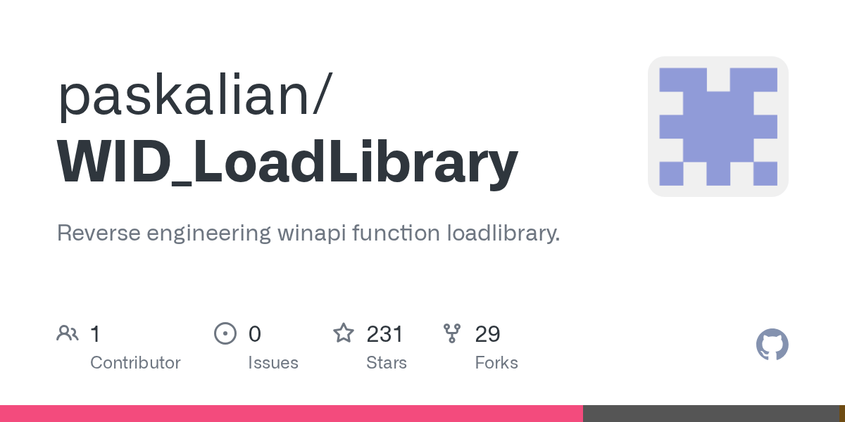 github paskalianwidloadlibrary reverse engineering winapi function