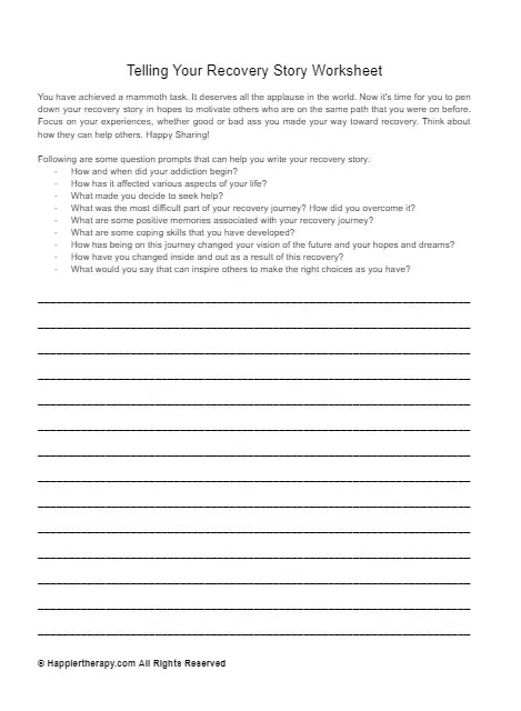 telling recovery story worksheet happiertherapy