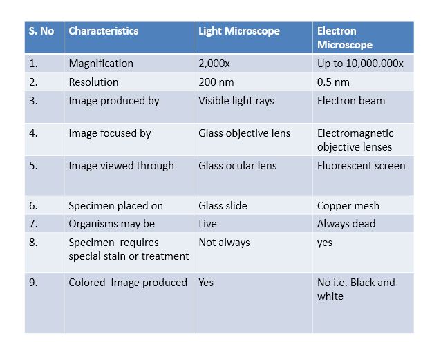 light microscope electron microscope major differences