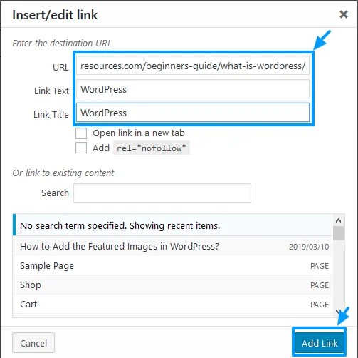 Berbagai Contoh Link Wordpress