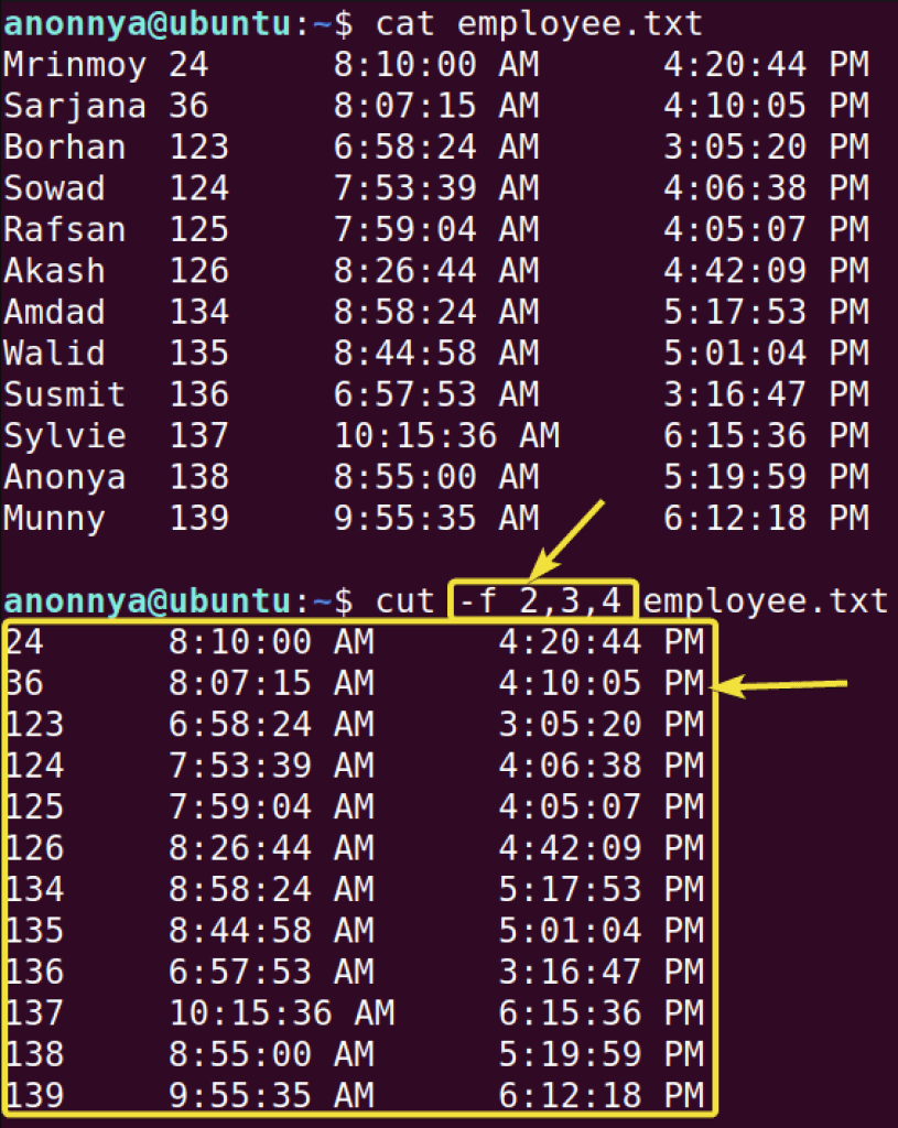Berbagai Contoh Linux Cut