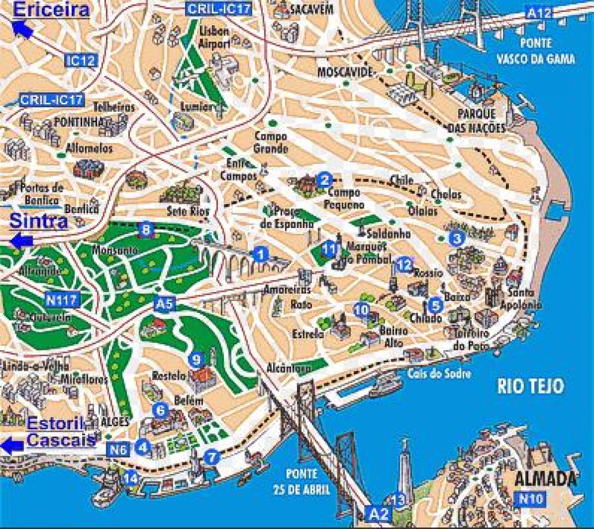 lisbon tourist map major attractions neighborhoods