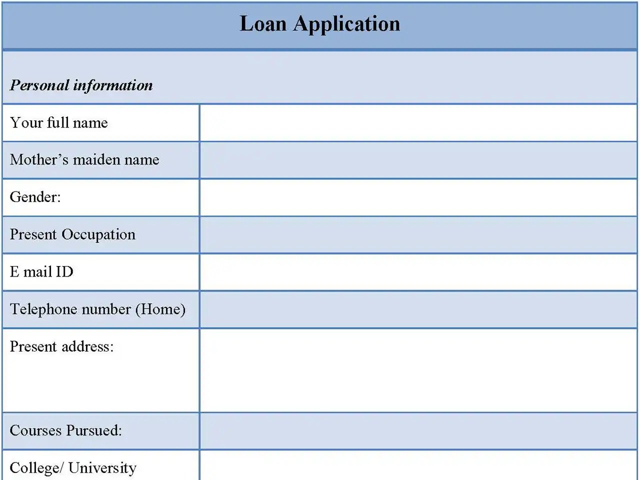 Berbagai Contoh Loan Form