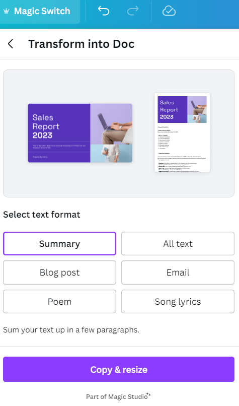 Berbagai Contoh Magic Switch Canva
