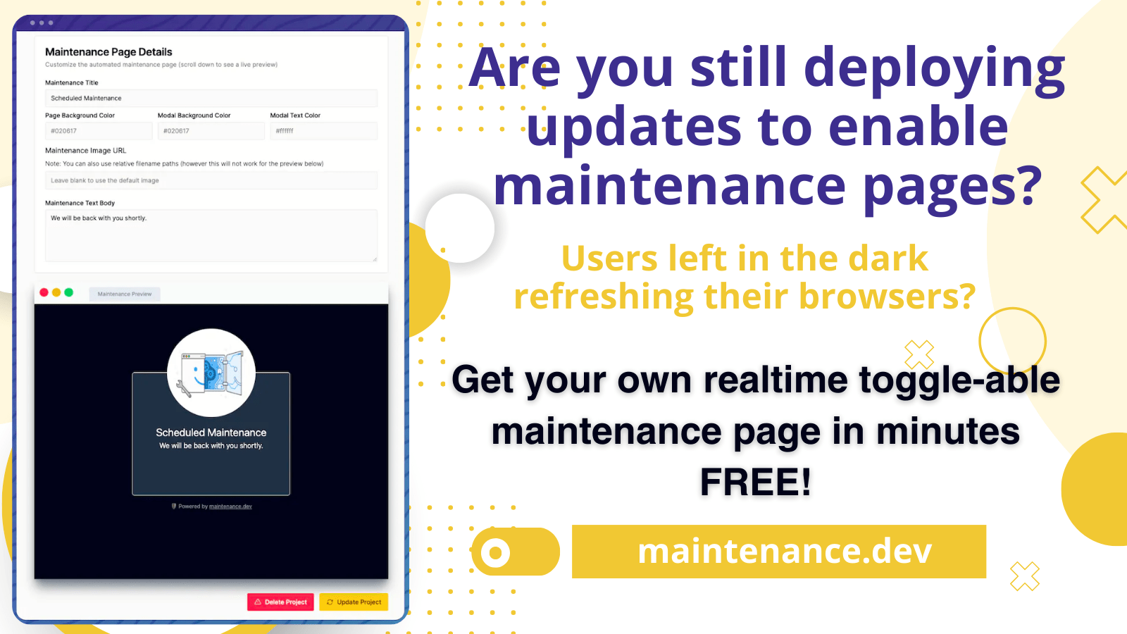 Jika kamu sedang mencari Maintenance Page, maka anda berada di halaman yang tepat. Kami menyediakan aneka Maintenance Page yang bisa anda pesan online. Silakan hubungi kami via +6282245078486, jangan lupa sertakan juka gambar yang diinginkan.