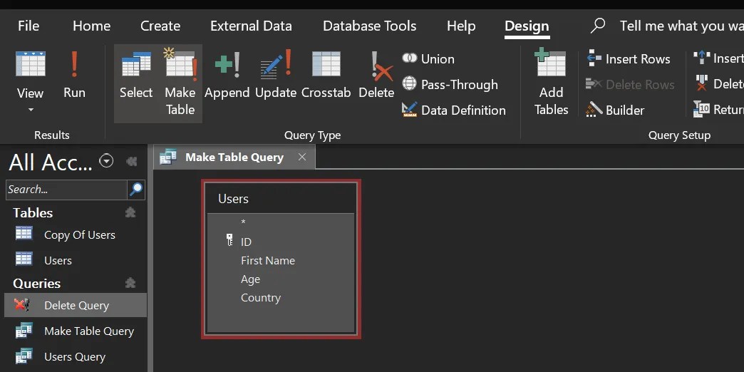Berbagai Contoh Make Table Query Access