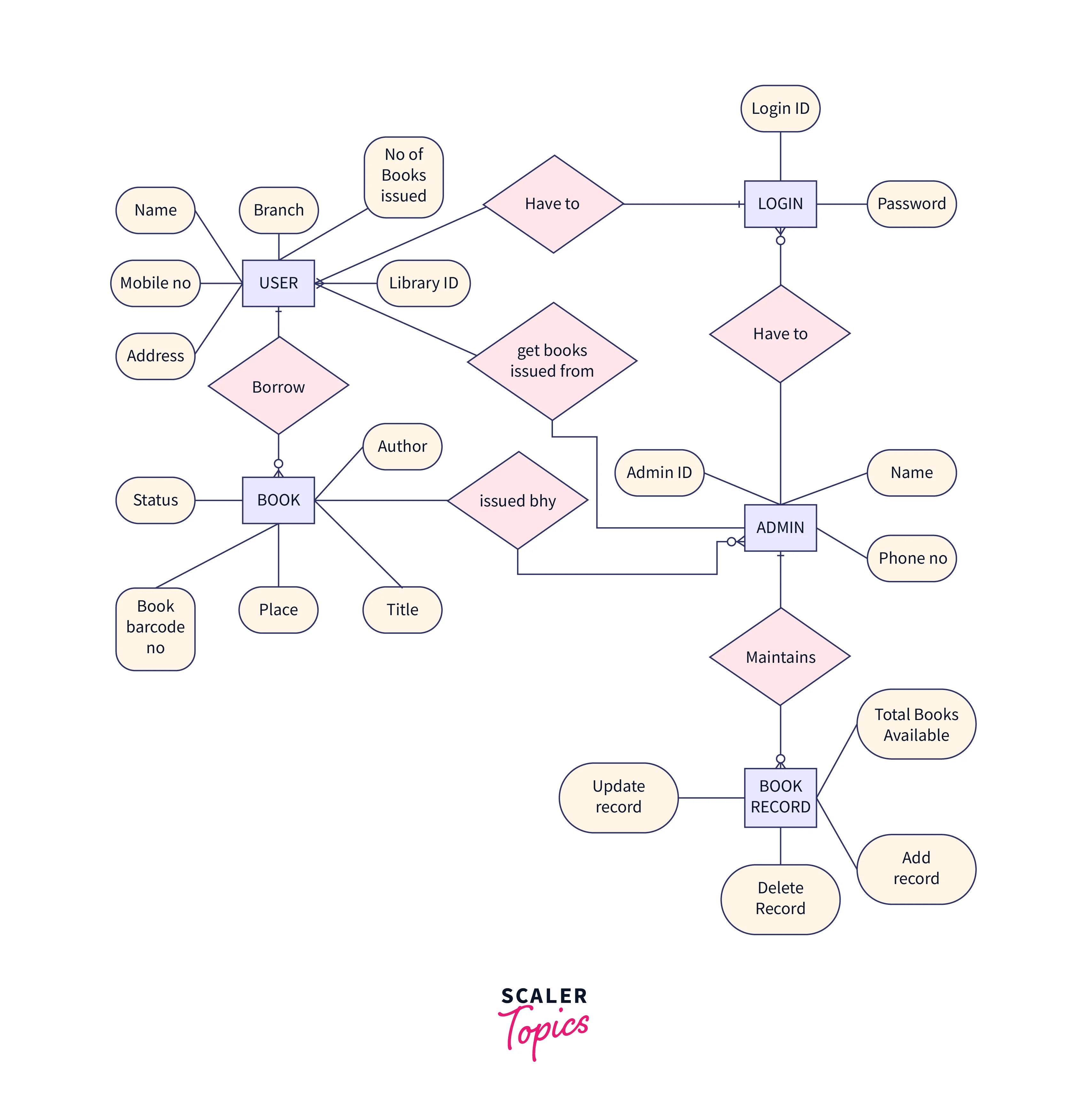 er diagram library management system scaler topics
