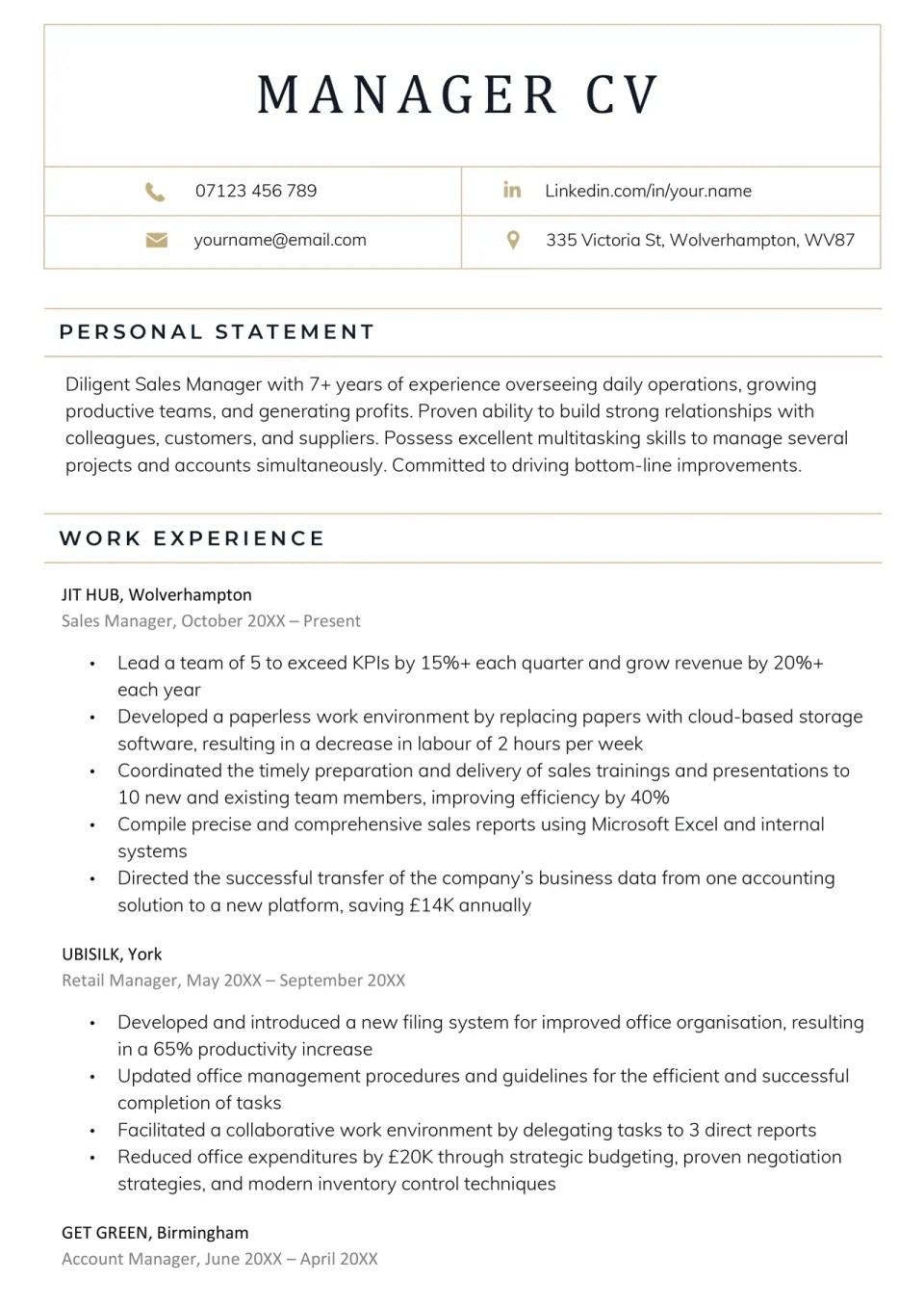 Berbagai Contoh Manager Cv Sample