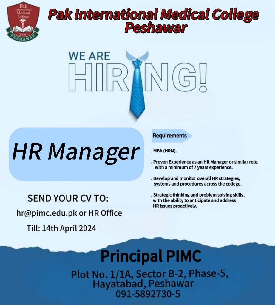 job vacancy hr manager position pak international medical college