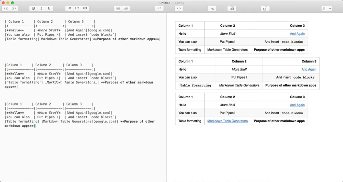 Berbagai Contoh Markdown Table Syntax
