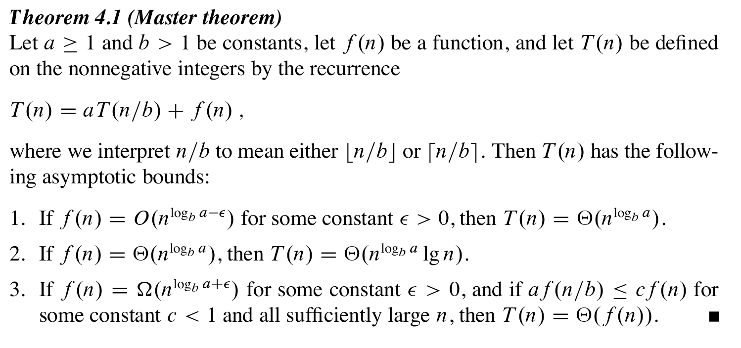 algorithms solving recurrence master theorem mathematics