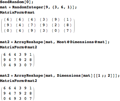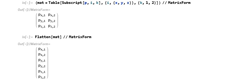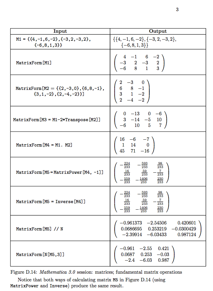 wolfram mathematica showing matrix operation matrix form