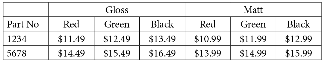Berbagai Contoh Matrix Table