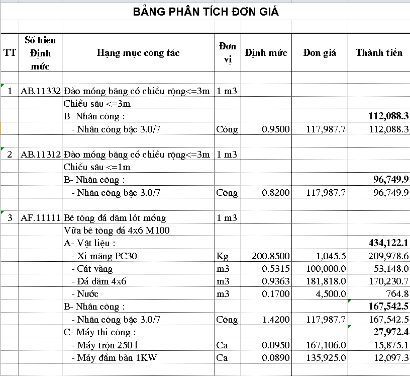 Mẫu Bảng Dự Toán Xây Nhà,