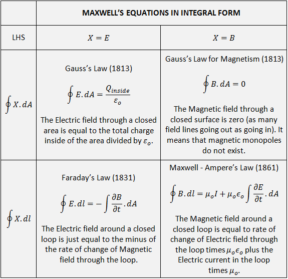 maxwells equations integral form statement characteristics