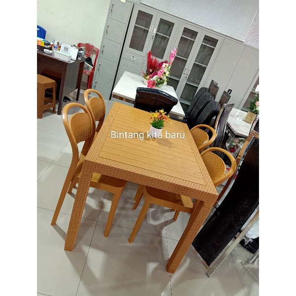 jual meja plastik bermotif naiba meja makan plastik motif rotan