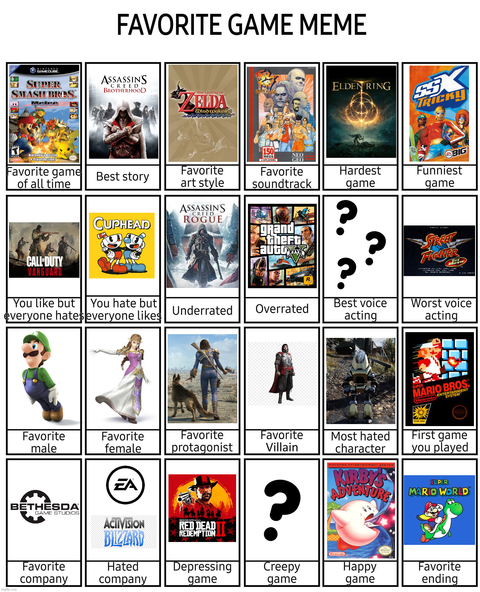 characters favorite video games meme template kimmiearts
