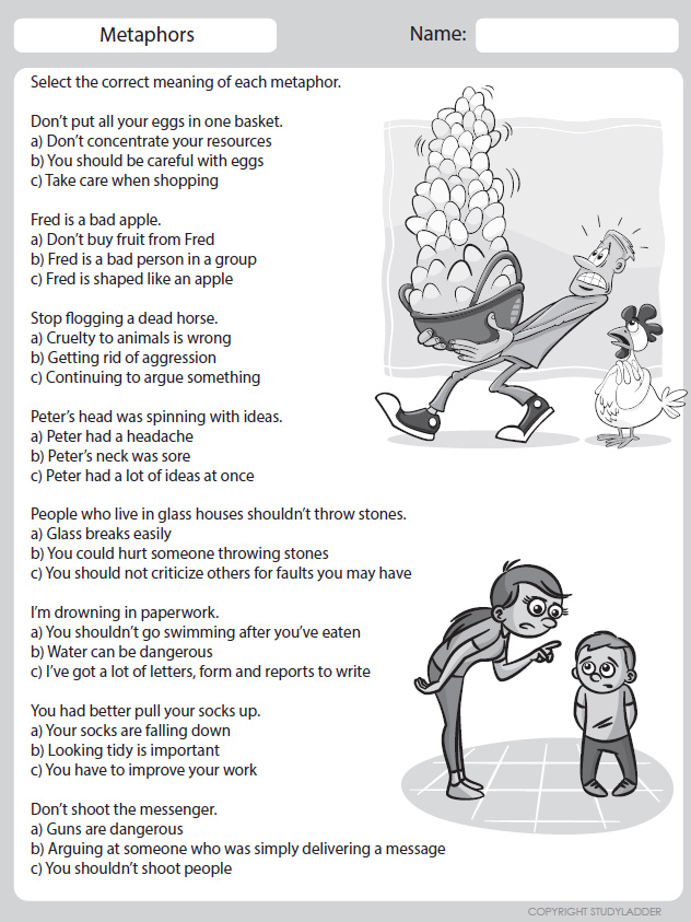 metaphor worksheet figurative language activity