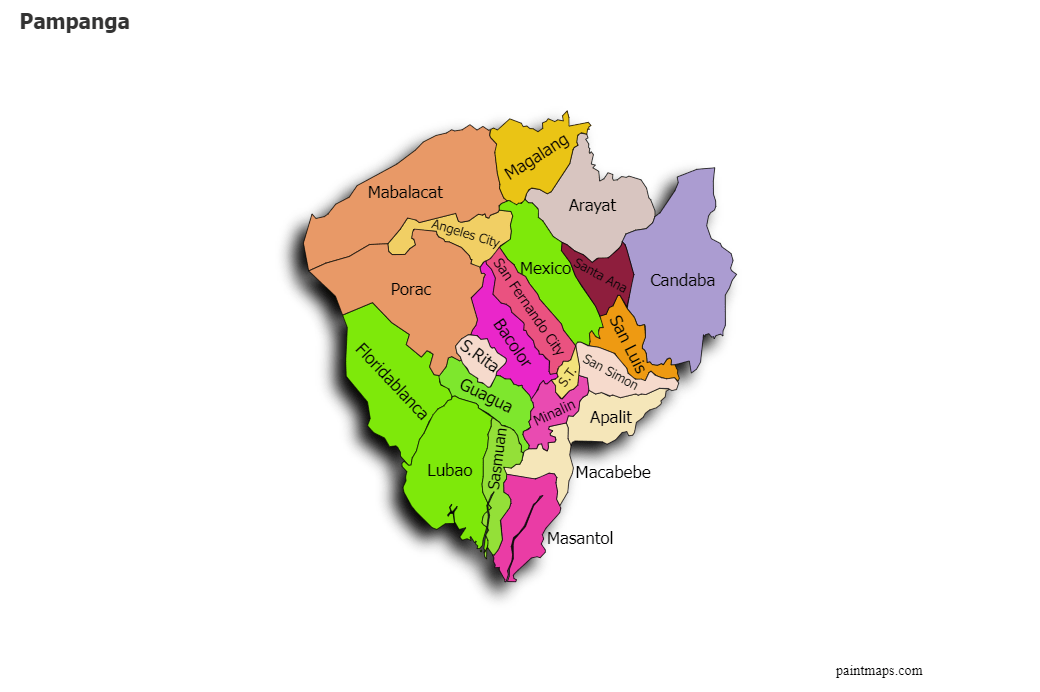 pampanga province philippines colored shader data lakes rivers shape