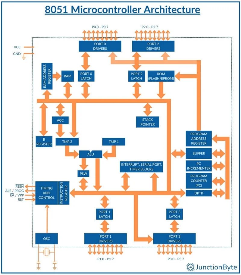microcontroller internal architecture labelled diagram
