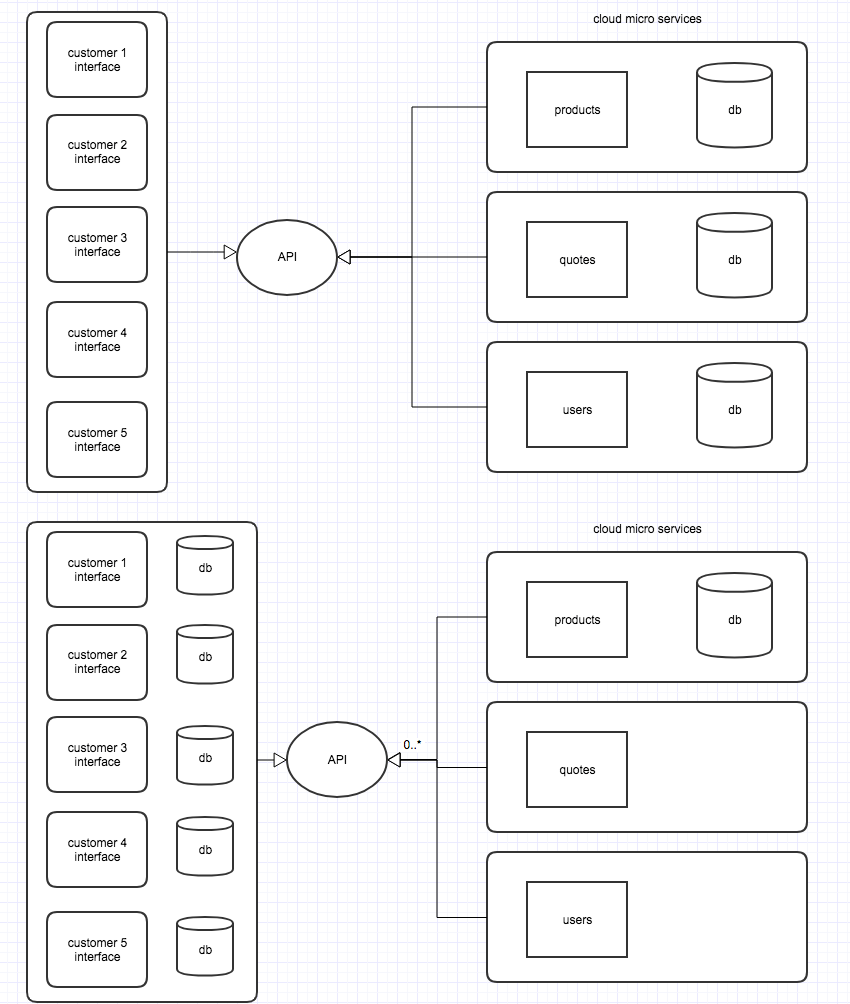 correct architecture micro services multiple customer