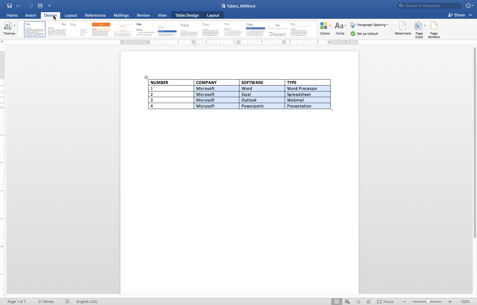 Berbagai Contoh Microsoft Word Table Format