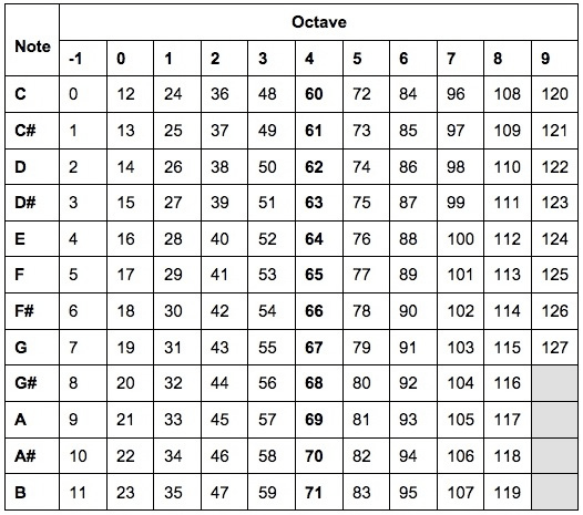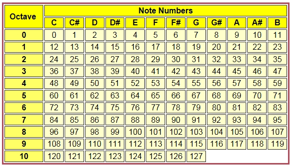 Berbagai Contoh Midi Note Number Chart