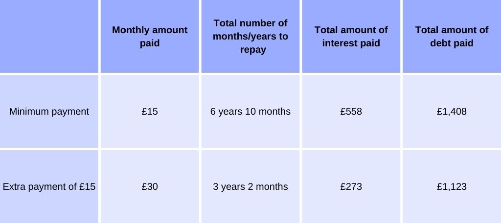 minimum payment warning difference gain money control
