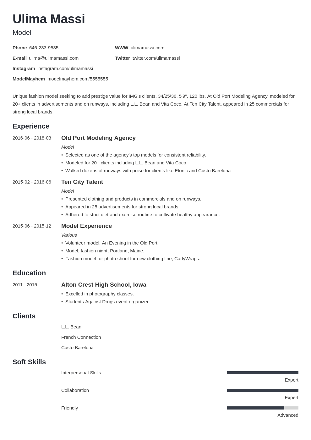 Berbagai Contoh Modeling Resume
