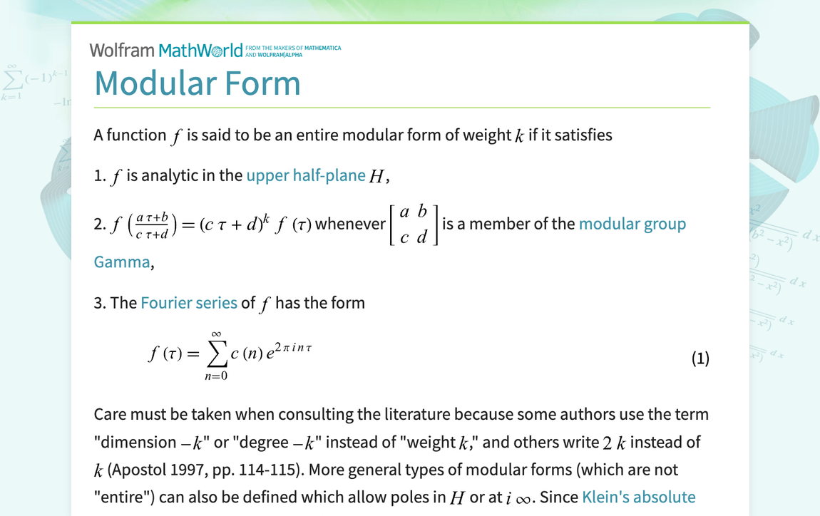 Tidak hanya Modular Form, anda juga bisa melihat gambar lain seperti String Theory, Interlocking Shapes, Complex Plane, Andrew Wiles, Ramanujan Conjecture, Unit Disk, High Resolution, Dirichlet Series, Algebraic Number Theory, Congruences, Drinfeld, and Topological.