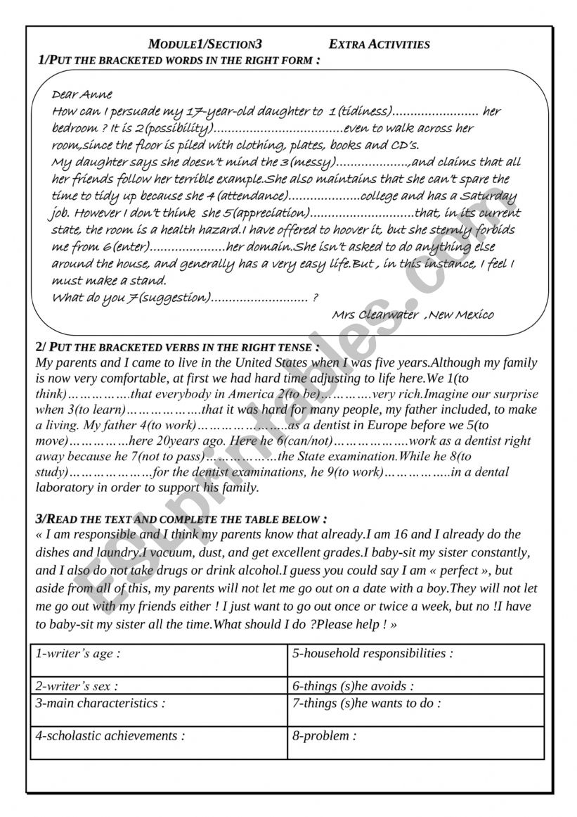 form module section esl worksheet racha farhani