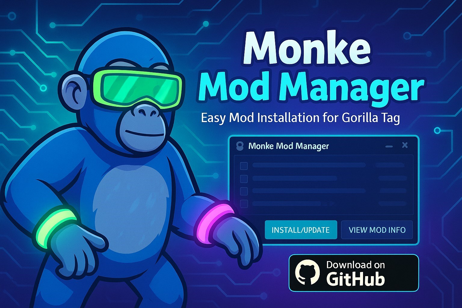 Tidak hanya Monkey Mod Manager, anda juga bisa melihat gambar lain seperti How Use, Not Working, How Fix, Newest Version, Catastrophic Failure, No Background, GitHub Download, exe Download, Logo, and Compter Gorilla Tag.