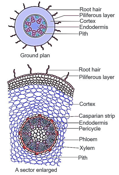 draw label cross section monocot dicot root draw