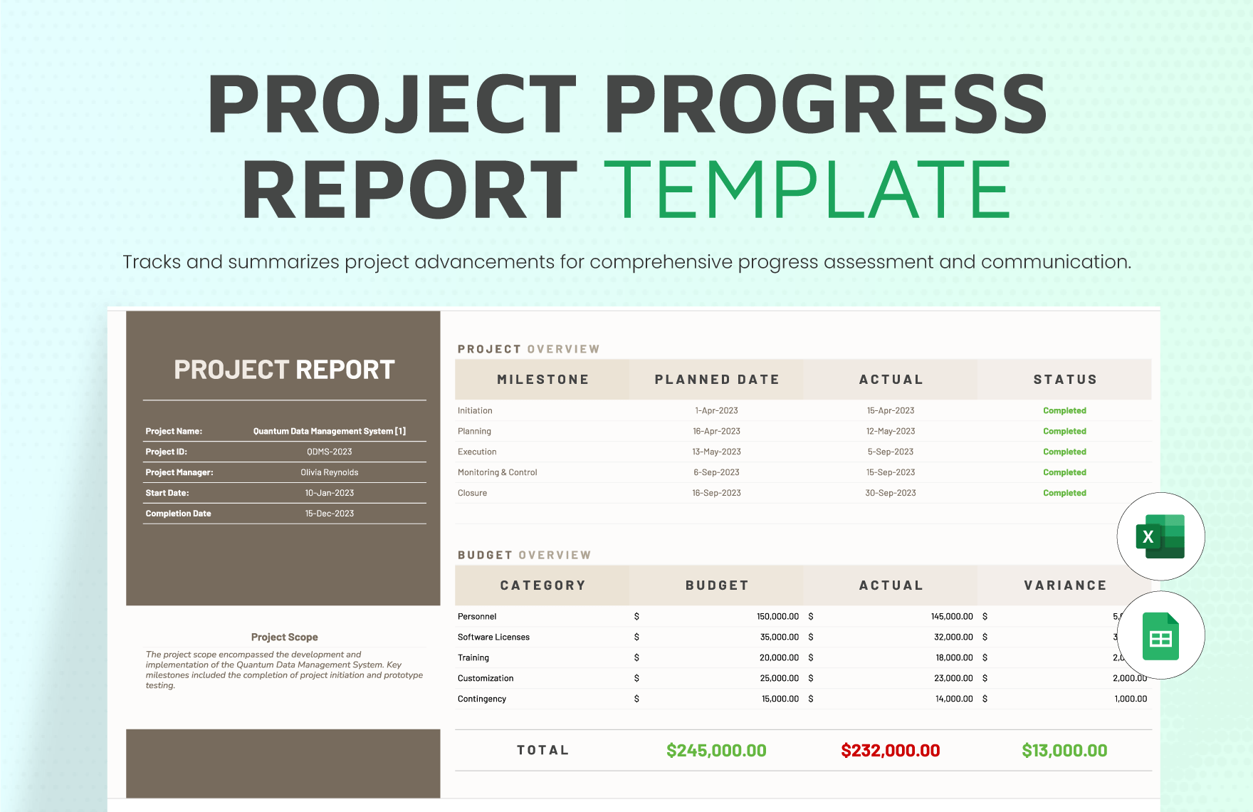 project monthly progress report template google sheets excel