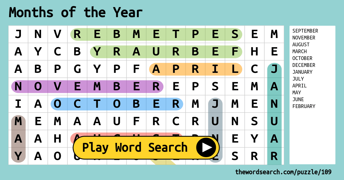 Berbagai Contoh Months Word Search