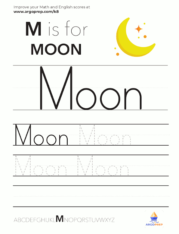 prep moon trace worksheets kids graphic thestudykits