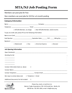 fillable mtanj job posting form fax email print pdffiller