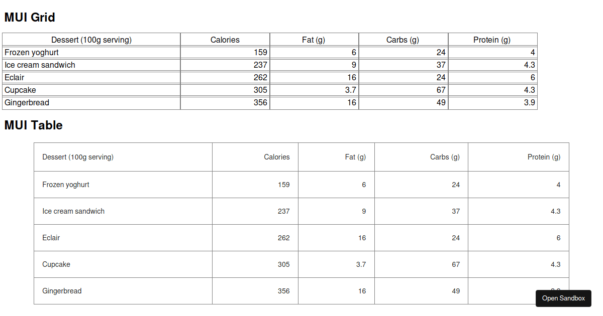 Berbagai Contoh Mui Table