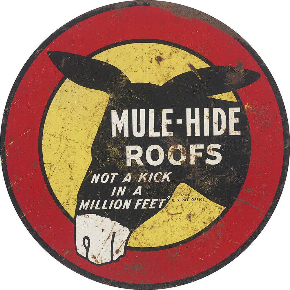 mule hide roofs advertising metal sign white buffalo sign company