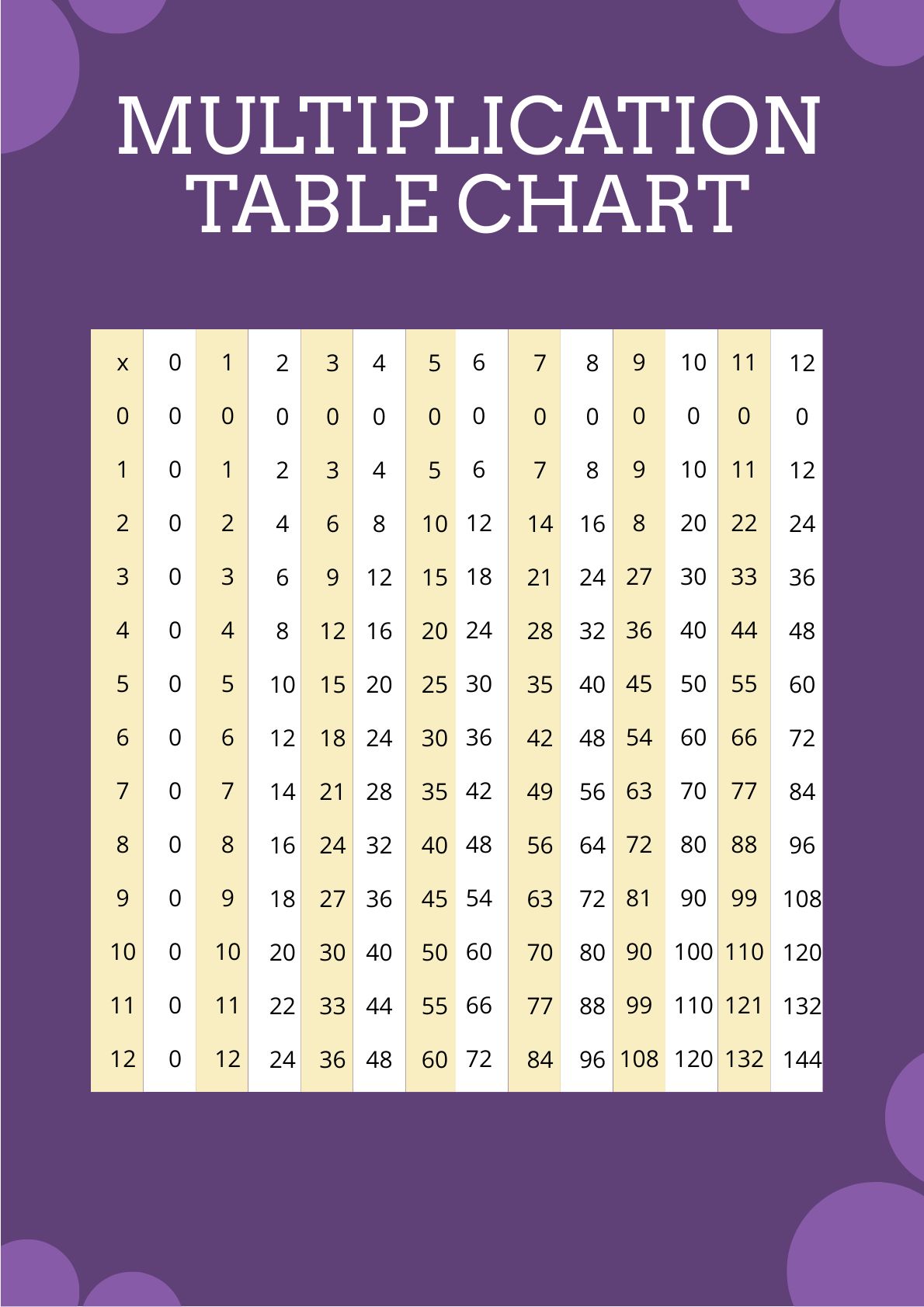 Multiplication Chart for Free,