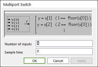 recommended block parameter settings multiport switch block