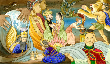 hand painted myth people illustration ancients ancient characters