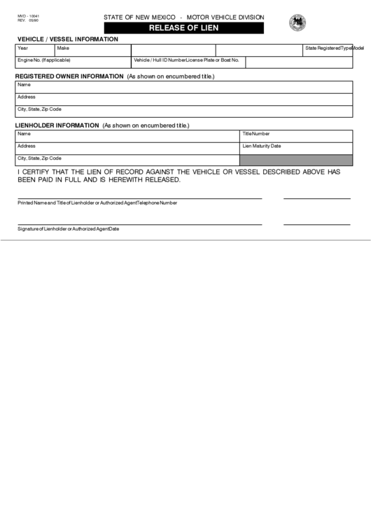 form mvd release lien state mexico motor vehicle