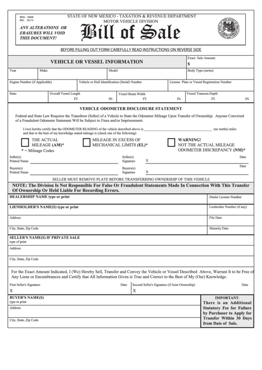bill sale vehicle vessel template mexico motor vehicle