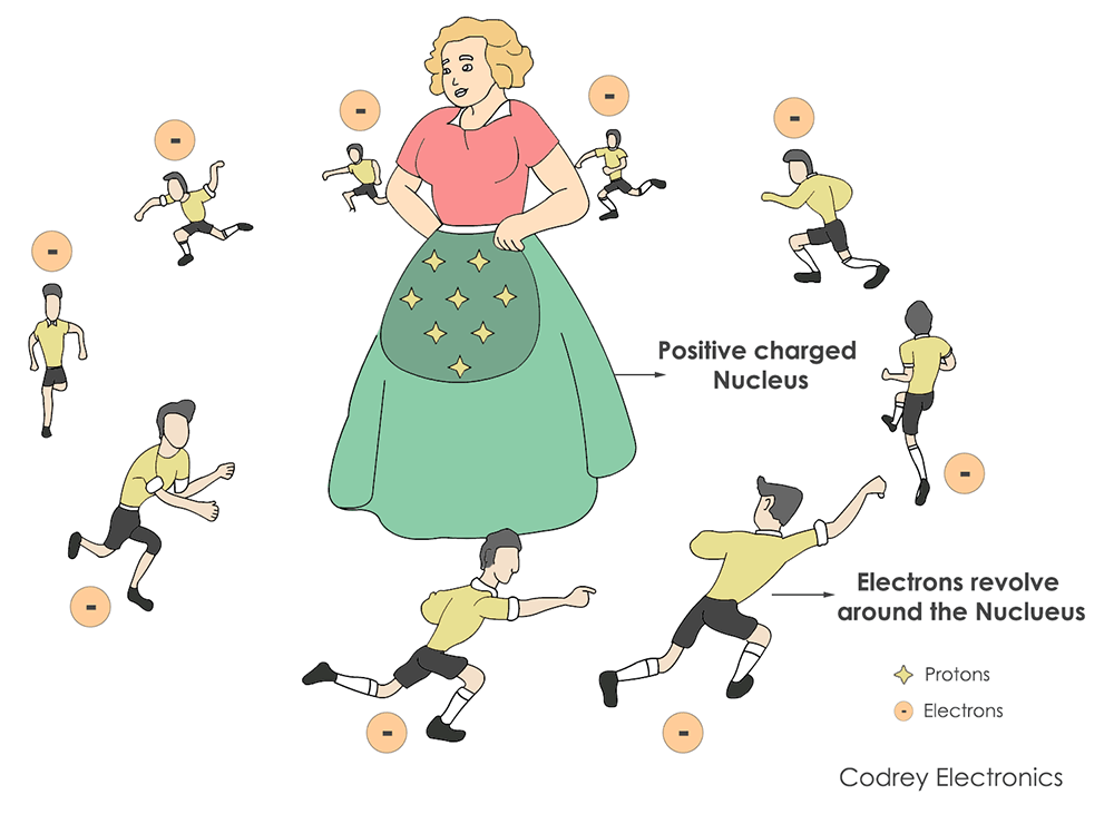 atomic nucleus model electrons orbiting fixed positively charged