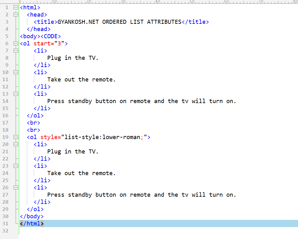 Berbagai Contoh Numbered List Html