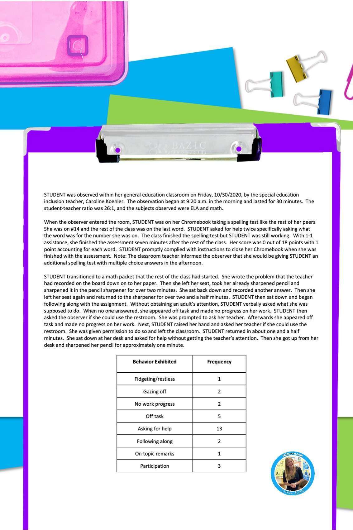 behavior observation students friendly teacher guide caroline